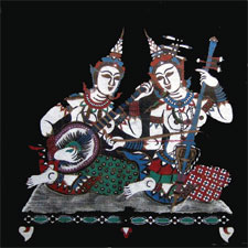 ACRYLIC ON CLOTH: This style of painting is done mostly by the tibetians and the themes include portraits and gods.