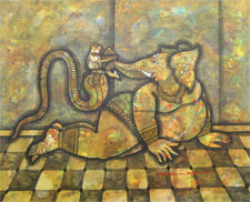 APPANNA N PUJARI: Born in 1977, Appanna obtained his AMGD and then PG Diploma in Painting Karnataka Chitrakala Parishat Bangalore in the year 2003-2004. He received Best Student Award in VAI Gadag, 1999-2000, All India Art exhibition award organized by Ayantika New Delhi, 2001, Parisar Sahasraman award in Gadag, 2000, State Level Award Tesmiya Art House, Shabad 2001, 15th All India art exhibition organized by SCZCC Nagpur, 2000-2001, Annual show awarded best student in Karnataka Chitrakala Parishat, State Level first award by Chitra Art Gallery Dharwad in 2002, 20th century Icon competitive award in 2004, 35th Annual exhibition award in 2006 organized by Lalitkala Academy Bangalore.