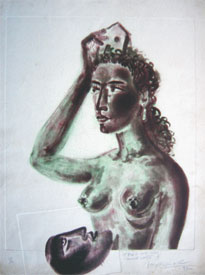 Each of the different value areas on a plate is etched at different length of time. The deeper the etch, the more ink will gather in the etched texture and the more solidly the area will print. To learn to look at the topography of an etching; the metal's subtle clues of process and of the artist's decision-making choices, offers another level to enjoy.