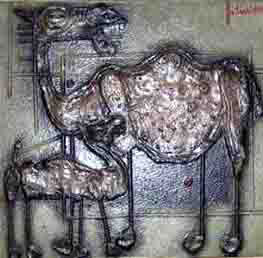 From Bishnupur ,West Bengal, a town of terracotta temples. His entry as a student of Fine Arts into Santiniketan,in the 1987 gave him an opportunity to explore his inner expressions into various forms of art. In his works the interplay of texture on rough of canvas ground, reflects the present day's Complexity of human relationships, that could be so simple and easy ,yet is an effort, an attempt and a struggle to hold on tight, for fear of losing and letting go. He has many exhibitions and camps to his credit and his works are in the collection of the Birla Academy and many individuals.