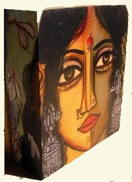 FAWAD TAMKANAT, 1962: Fawad is a promising young artist from Hyderabad. Throughout his career as an artist, he has strived to develop and then perfect a visual vocabulary that he can use to communicate with his viewers. And this language, that he uses to take on peoples' minds, has nothing to do with society, religion or politics, but, quite blatantly, is all about his own personal fixations. Fixations that include those with time, and one's place in the general scheme of things. Today, Tamkanat experiments with several different media and surfaces, diversifying to include those like watercolours, acrylic, etching drypoint and tarpaulin in his oeuvre. |