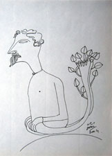 JAI ZAROTIA: Born in Delhi in 1945, Jai Zharotia never held his creativity a captive of logic and reason. His freedom of spirit let him move beyond their confines enabling him to conjure up the powerfully evocative and communicative images we see in his work today. He didn't want to paint only the comprehensible, but instead wanted to discover and explore the world that lies beyond the realms of logic. The idea of duality in the iconography finds a place in all of his recent works.. But even though an apparent structural divide exists in his paintings, they do not lack any dynamic energy. Zharotia makes sure that they go through a constant reconstruction and reinterpretation within themselves as well as within our minds. The mystery that shrouds Zharotia's work isn't simply born from the metaphysical or a questioning of one's own purpose as in some other artists' works, but finds root in the artist's personal life as well. Zharotia has found that throughout his 'existence' there have been some greater forces at work that led him to make many life-changing decisions he wouldn't have otherwise. Zharotia's ability to leave the commonplace behind and find the unusual is seen in the technique he employs as well. His paper works are mixed media most of the time, combining tempera and pencils with watercolours. His paintings also have almost surreal two-colour backgrounds, and even the play of light and shadow he uses in them is not confined by any physical laws, just like the subject of his works.