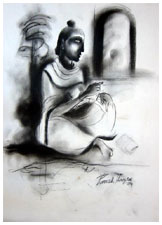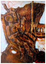 PARESH HAZRA: Born in 1952 in Tamluk, Midnapore district of West Bengal, Hazra graduated from the Govt. College of Art, Calcutta with a first class. He obtained a Post Graduate Diploma in the Teaching of Art in 1980. He has had numerous solo shows in Bangalore, New Delhi, Calcutta, Chennai and Pondicherry and his work has been shown abroad in group shows. He is the recepient of many awards, among them the Silver Medal from the Oriental Art Society, Calcutta – 1977, Certificate of Merit, Govt. College of Art, Calcutta – 1987 and the Birla Academy Award, Calcutta – 1990. His work is in the collections of many prestigious organisations and private collections throughout India and abroad. Hazra works mainly with old egg tempera on canvas board, in a figurative style, with brilliant colours and strongtextures. |