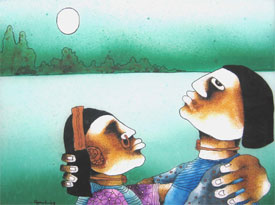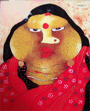 In Mukherjee's work, we see the Bengal School strong figurative tradition being carried ahead and interpreted in a very contemporary idiom.