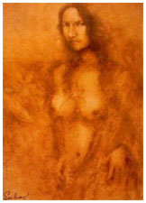 SUHAS ROY: He studied at the Indian College of Arts and Draftsmanship,Calcutta, and under the tutelage of Prof. S.W. Hayter at the Atelier 17 Ecole Superior Des Beaux Arts, Paris. His works have been exhibited allover the world through exhibitions like the Asian Graphic Prints Traveling Exhibition, USA, the Tokyo Print Biennale, Japan, Contemporary Indian Art,Yugoslavia, Romania, Czechoslovakia, Hungry, and Wounds, at the Central Institute Modern Art, New Delhi, and the National Gallery of Modern Art, New Delhi. Roy lives and works in Santiniketan where he is the head of the Department of Painting at Kala Bhavan, Santiniketan. His craftsmanship and consummate skill that ensure that his richly romantic subjects do not touch extreme syrupy and stereotypical portrayals. Instead, their very patent beauty veers towards melancholic grace and elegance. This graceful portrayal of his subjects has much to do with his choice of refinement. The mystical flavour of his works arose from his materials - his crayons, charcoal and brush have sensitivity and interpretations of the 'unknown'.